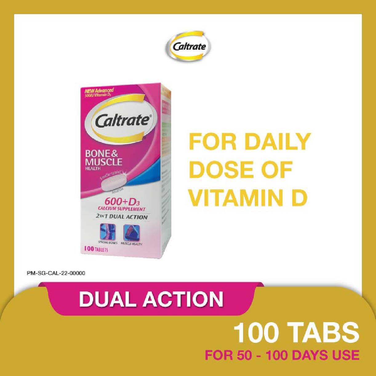 CALTRATE 2 In 1 Dual Action Calcium + Vitamin D3 Tablets 600Mg (For Bones & Muscles) 100S