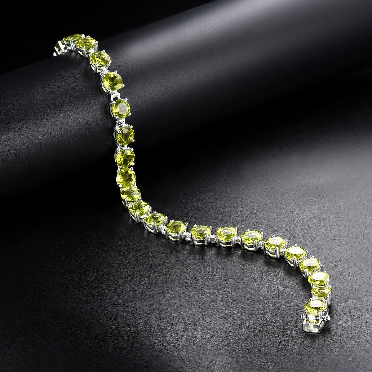 Natural Peridot 21.41Ct Gemstone Solid 925 Sterling Silver Chain Bracelet 7.25 Inch for Women Round 6mm Gemstone Fine Jewelry