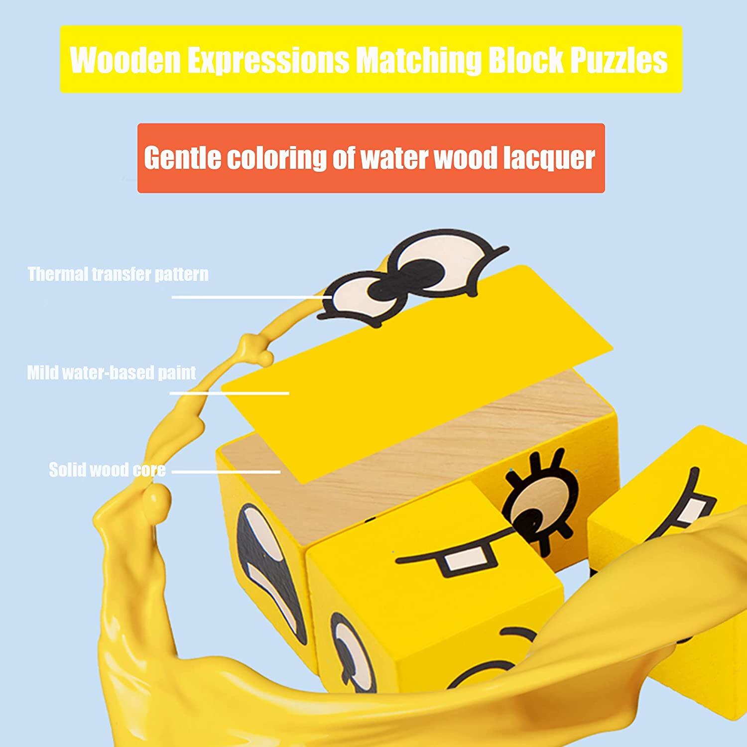 Wooden Expressions Matching Block Puzzles Face | Parent-Child Building Block Jigsaw Board Game | Emotional Educational Puzzle Toys for Kids Boys and Girl | Gift for 3-8 Yeahs Old