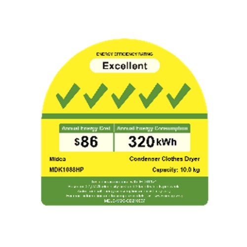[Bulky] Midea MDK1088HP Silver Heat Pump Dryer, 10kg, Energy Rating 5 Ticks