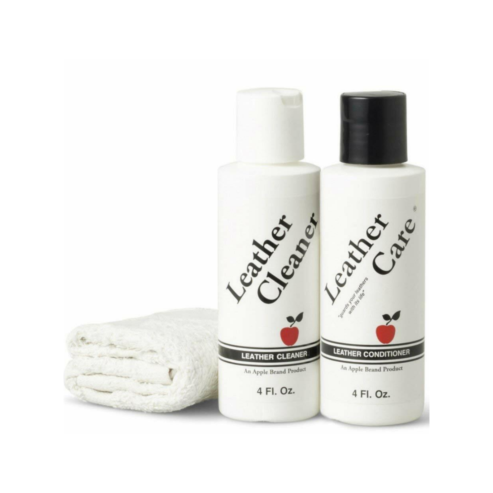 Apple Brand Leather Care Cleaner and Conditioner Kit (4 oz. Cleaner, 4 oz. Conditioner and Cloth in a convenient pouch) For Use On Leather Purses, Handbags, Shoes, Boots, Accessories, even Furniture a