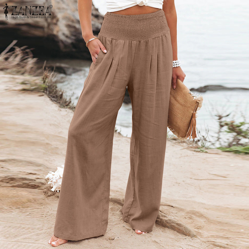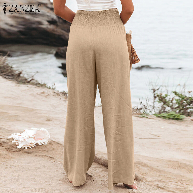 ZANZEA Women Business Office Chino Long Pants Corset Smocked Loose Trousers Slacks Plus