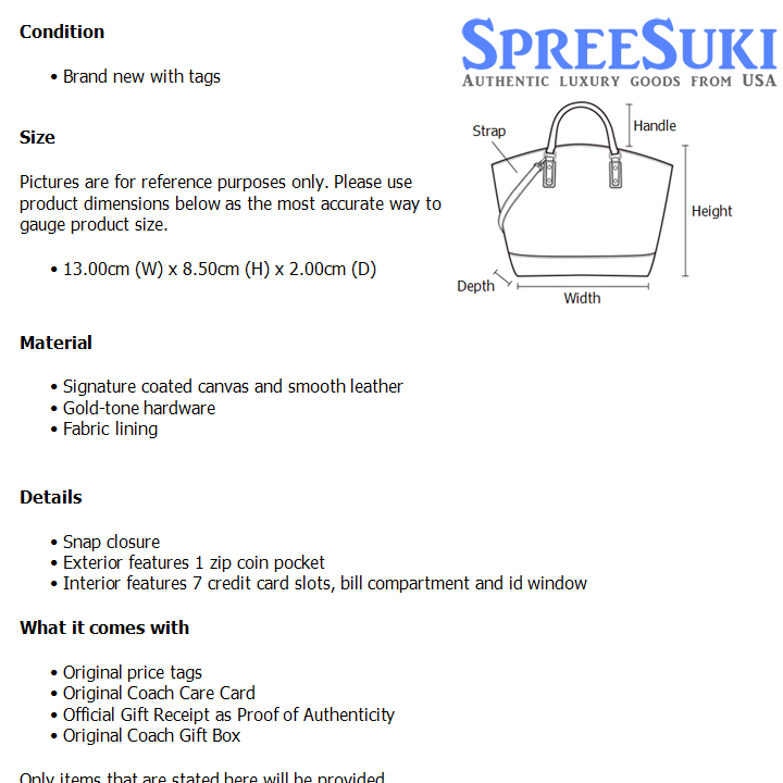 All our products are 100% authentic and purchased from Coach stores in USA. We are a reputable registered business in Singapore and it is illegal to sell counterfeit goods in Singapore. This product also comes with a gift receipt which is printed by the Coach store that we purchased the item from. It states the item that we purchased and the Coach store that it was purchased from, proving the authenticity of the item. Buy with confidence.