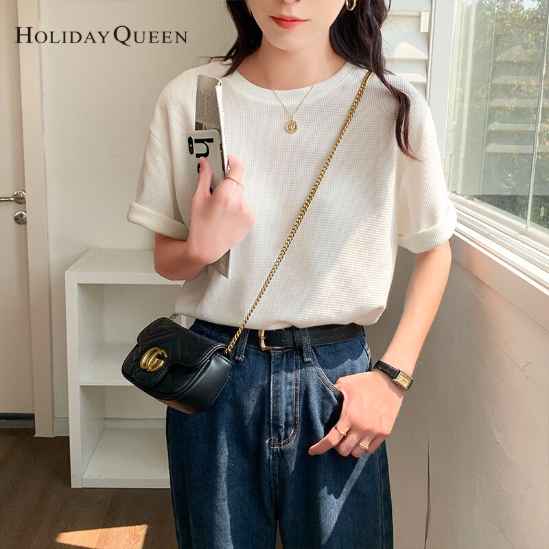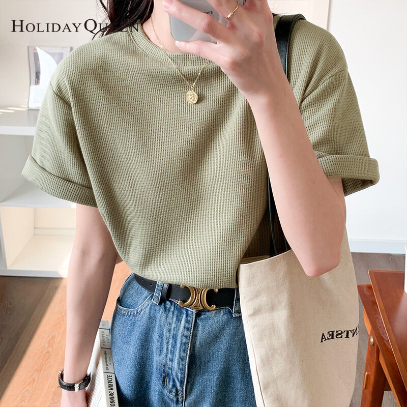 HolidayQueen Matcha Green Short-sleeved T-shirt Women's Korean Version 2022 Summer New Waffle Loose All-match Top S M L XL Free Shipping HQ1261