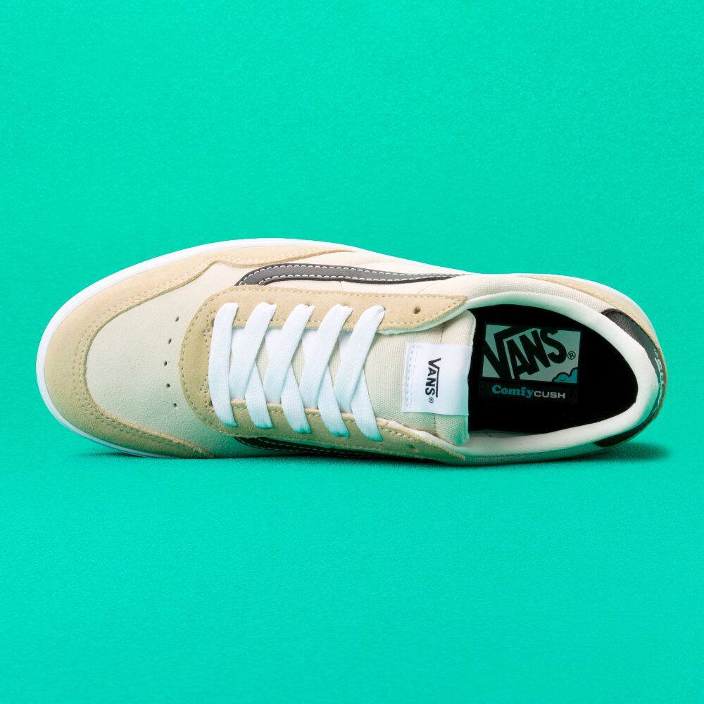 The Toned Cruze Too ComfyCush is a classic low top, lace-up silhouette featuring sturdy suede and textile uppers with the iconic Vans sidestripe. The Toned Cruze Too ComfyCush also includes padded collars, Wafflecup construction, and new drop-in sockliners for maximum comfort.