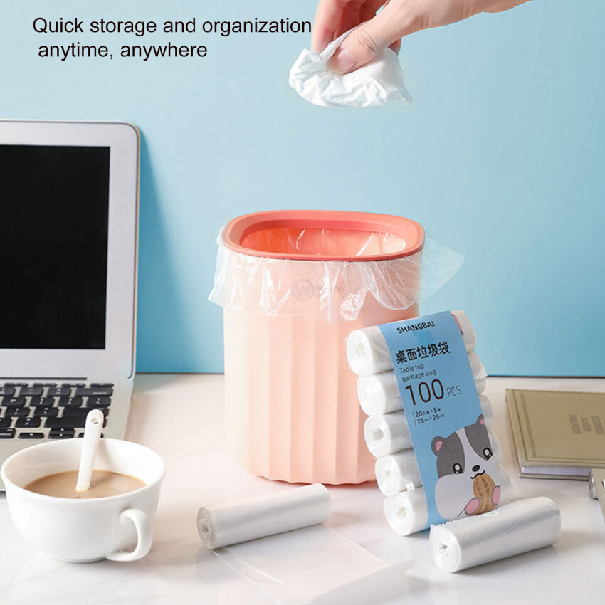 【Ready Stock】100pcs Small Trash Bags 5Rolls Mini Garbage Bag Household Thickened Small Desktop Garbage Can Garbage Bags Disposable Trash Bags Kitchen Tools